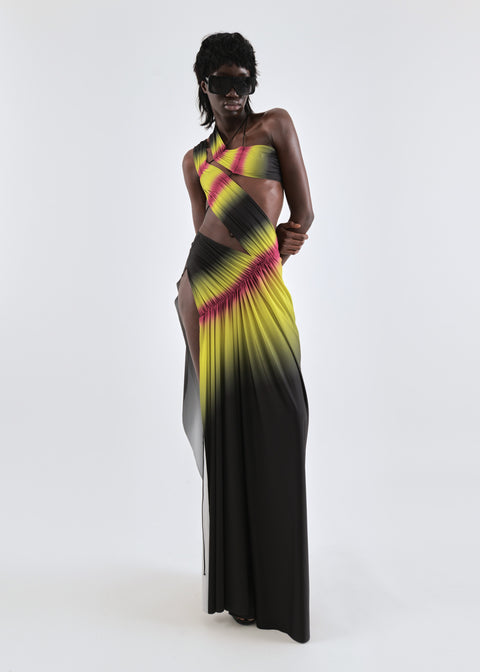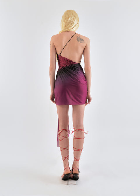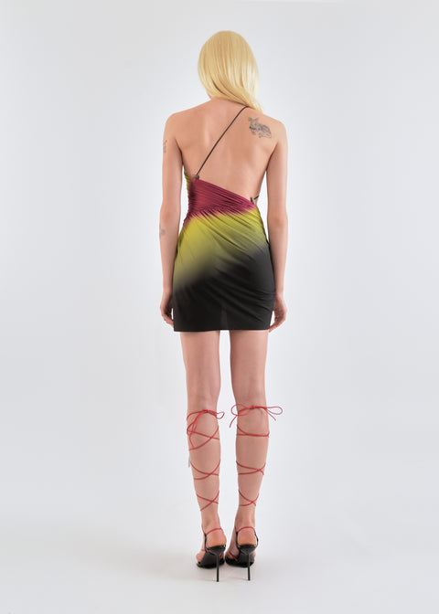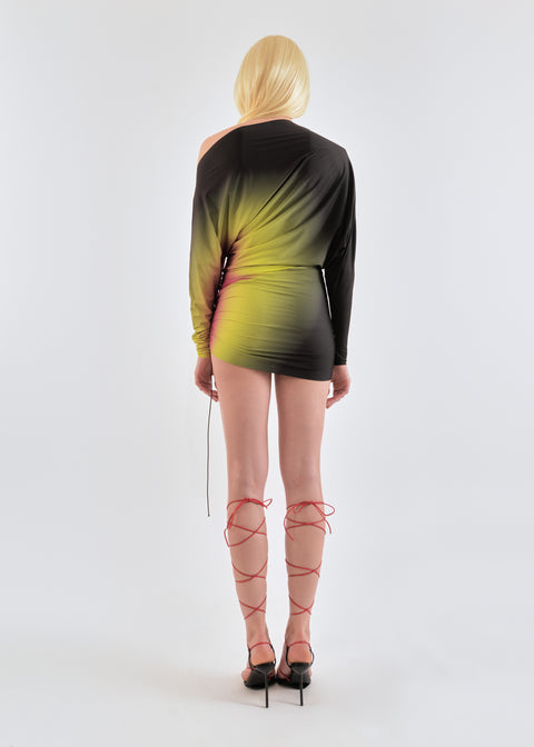 Draped mini dress in lime/wine