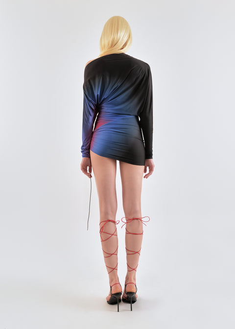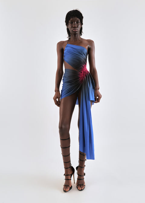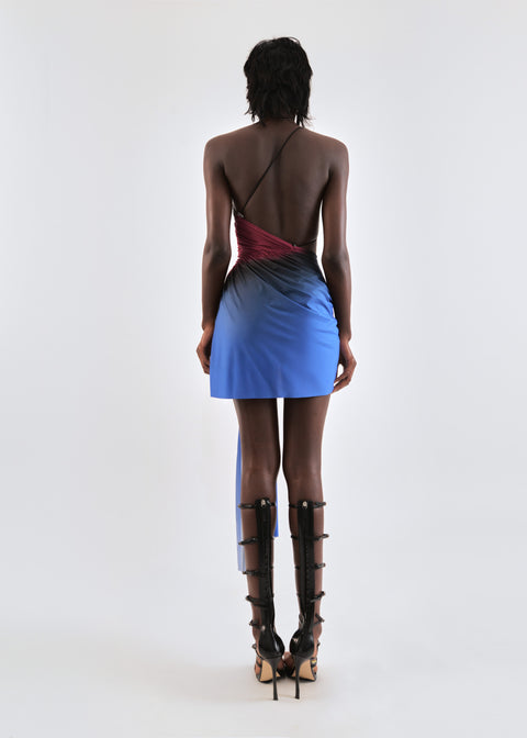 Draped mini dress in cobalt/wine