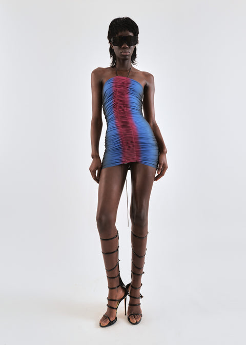 Gathered mini dress in cobalt/wine