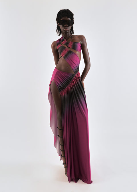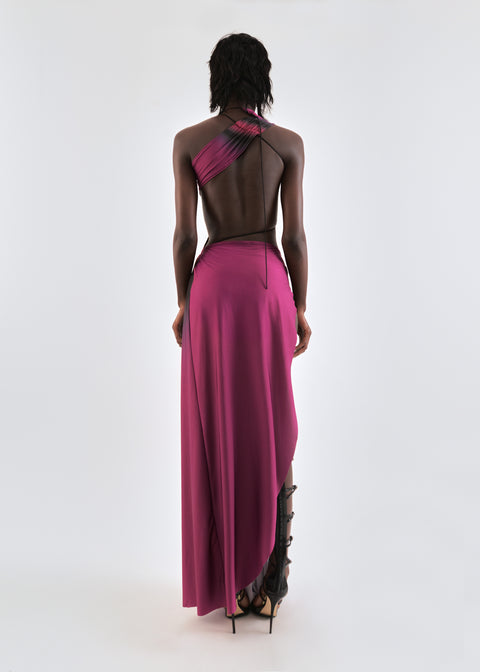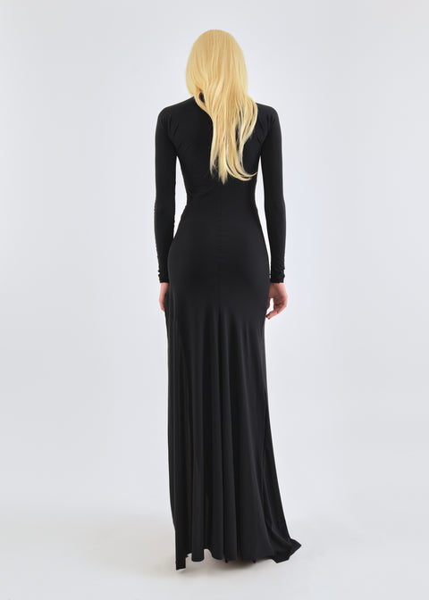 Draped asymmetric maxi dress in black