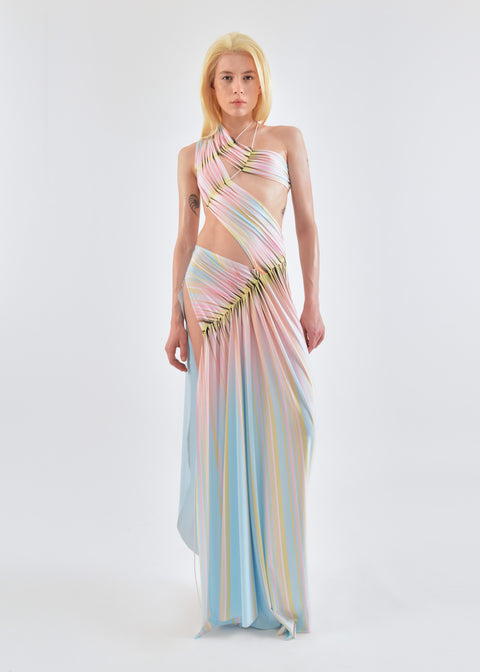 Wrap-around dress in stripes print