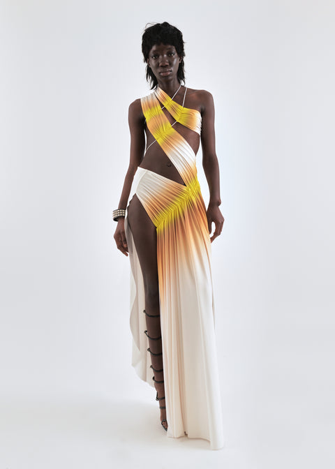 Signature dress in cream/yellow