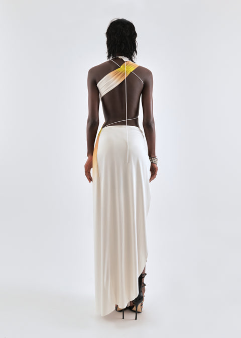 Wrap-around dress in cream/yellow