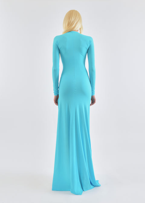 Draped asymmetric maxi dress in turquoise