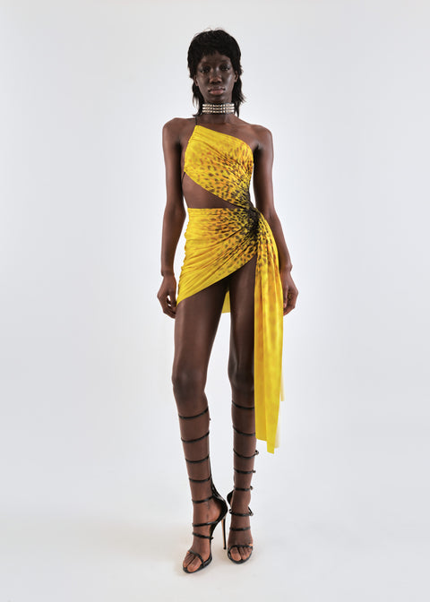 The mini signature dress is a youthful spin on our iconic piece. The manual draping process and cascading form celebrate vibrant elegance with a flirtatious touch. The essence of Fal-ash in a shorter, spirited variant that effortlessly enhances natural curves.